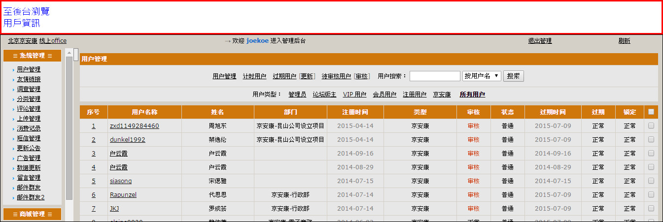 管理員至後台,檢查,同仁註冊的資訊
