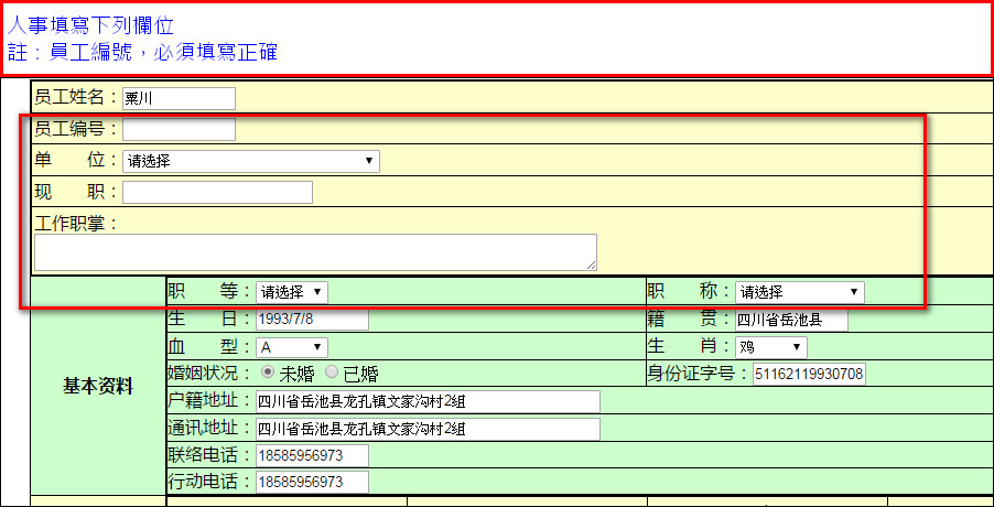 填寫下列欄位